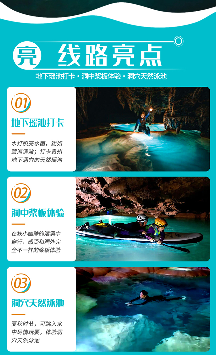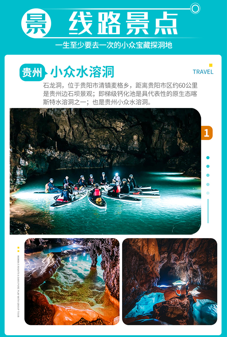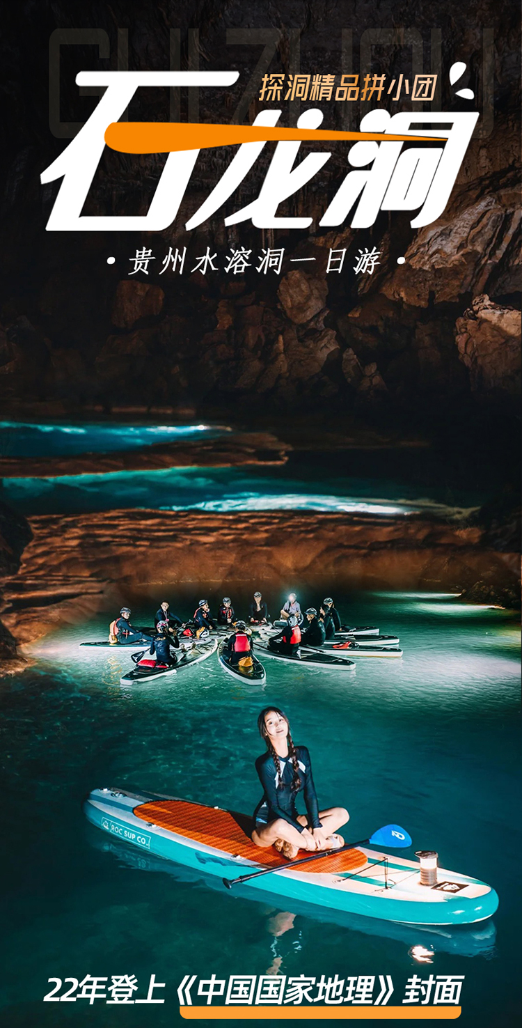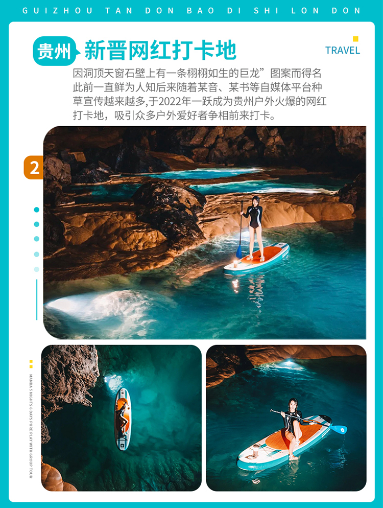 依次进洞,一路浆板划行,经过无数绝美瑶池,跟着领队拍大片(可拿手机让领队帮忙多拍点照片)