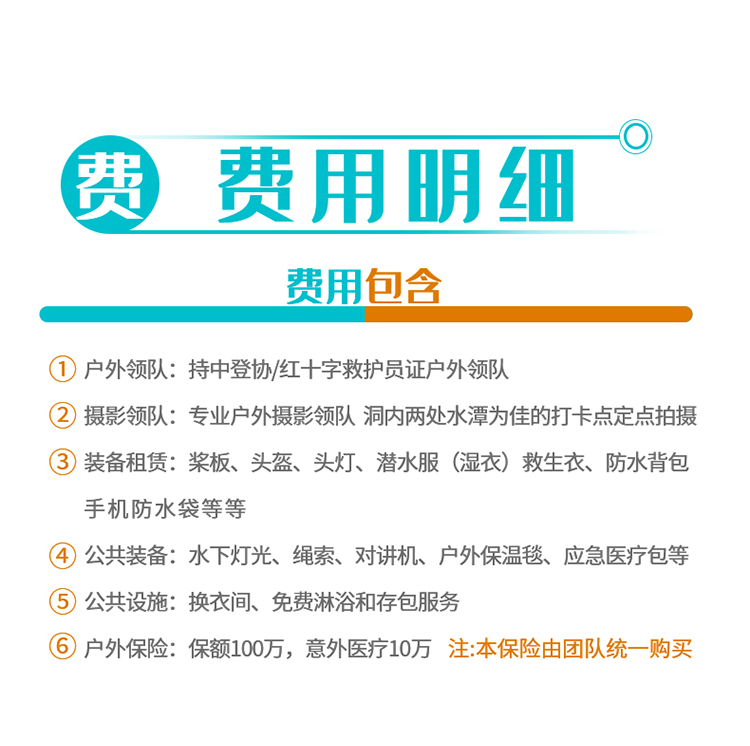 6.户外保险:保额100 万,意外医疗10万(本保险由团队统一购买)