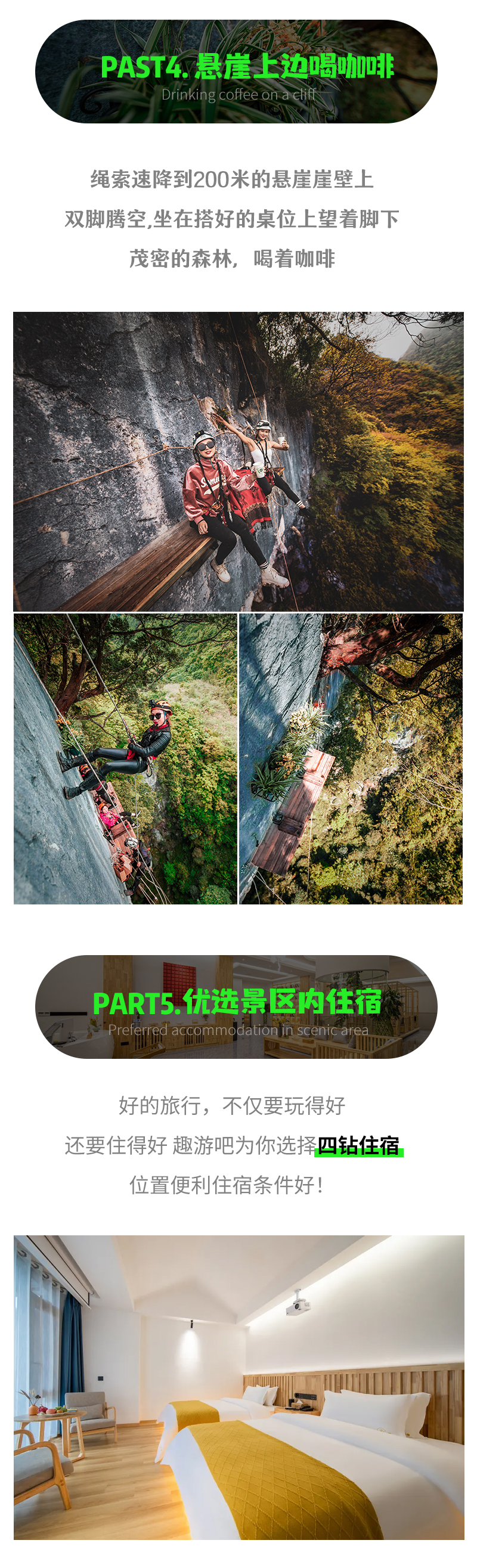 该行程不含悬崖咖啡馆体验费用398元/人,如有需要可以选择酷玩森林含咖啡/体验套餐;